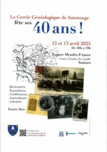 Conférence Le Cercle Généalogique de Saintonge les 12 et 13 avril 2025