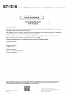 ENEDIS – COUPURE COURANT LE 27 JANVIER 2026Par Vanessa COSSET / 15 décembre 2025 ENEDIS – Coupure courant le 27 Janvier 2026 pdf | 547,77 Ko | 15 Décembre 2025 Télécharger Facebook Twitter LinkedIn Email Imprimer