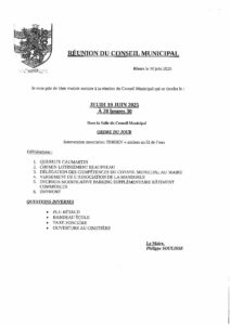 Réunion Conseil Municipal le Jeudi 19 Juin 2025